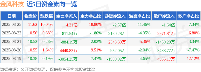 8月25日的资金流向数据方面,主力资金净流入4.21亿元,占总成交额18.8%,游资资金净流出2.57亿元,占总成交额11.46%,散户资金净流出1.64亿元,占总成交额7.34%。